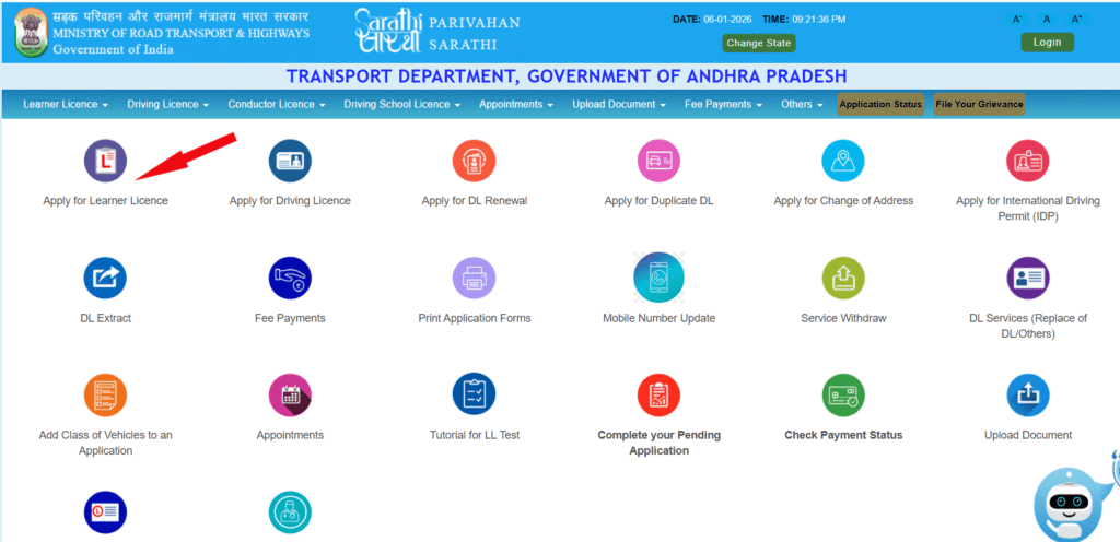 Learner Licence (LLR) Apply Online 2026 ప్రక్రియ ఇప్పుడు చాలా సులభం అయింది. భారత ప్రభుత్వ అధికారిక Sarathi Parivahan పోర్టల్ ద్వారా మీరు ఇంటి నుంచే LLR Apply Online చేయవచ్చు. డ్రైవింగ్ లైసెన్స్ పొందాలంటే ముందుగా Learner Licence (LLR) తప్పనిసరి.